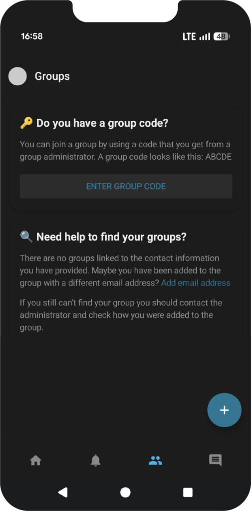 5. Zodra je een account hebt, sluit je aan bij onze duikgroep door de code YCPDG in te voeren.